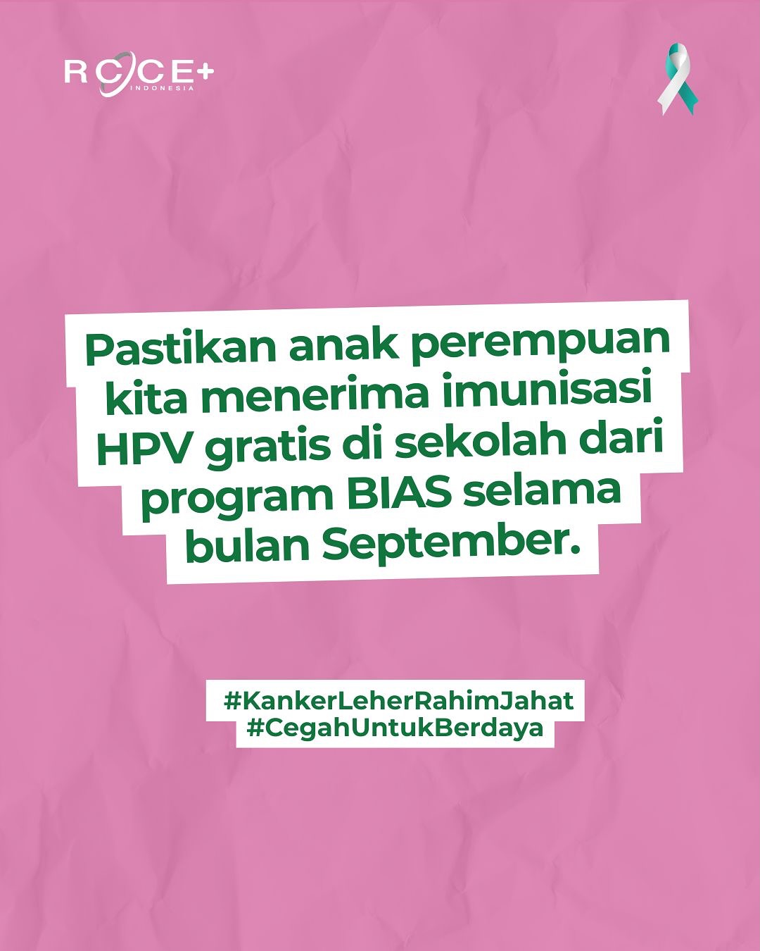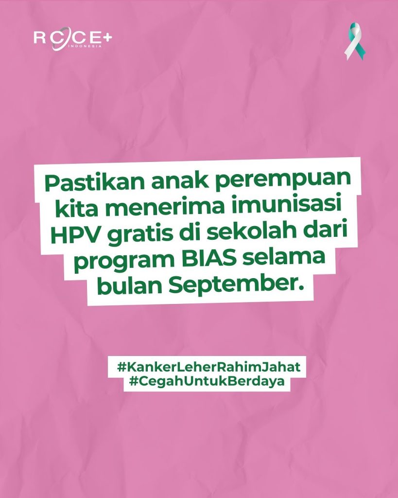Pastikan anak perempuan kita mendapat imunisasi HPV gratis di Sekolah agar terlindung dari bahaya kanker leher rahim.