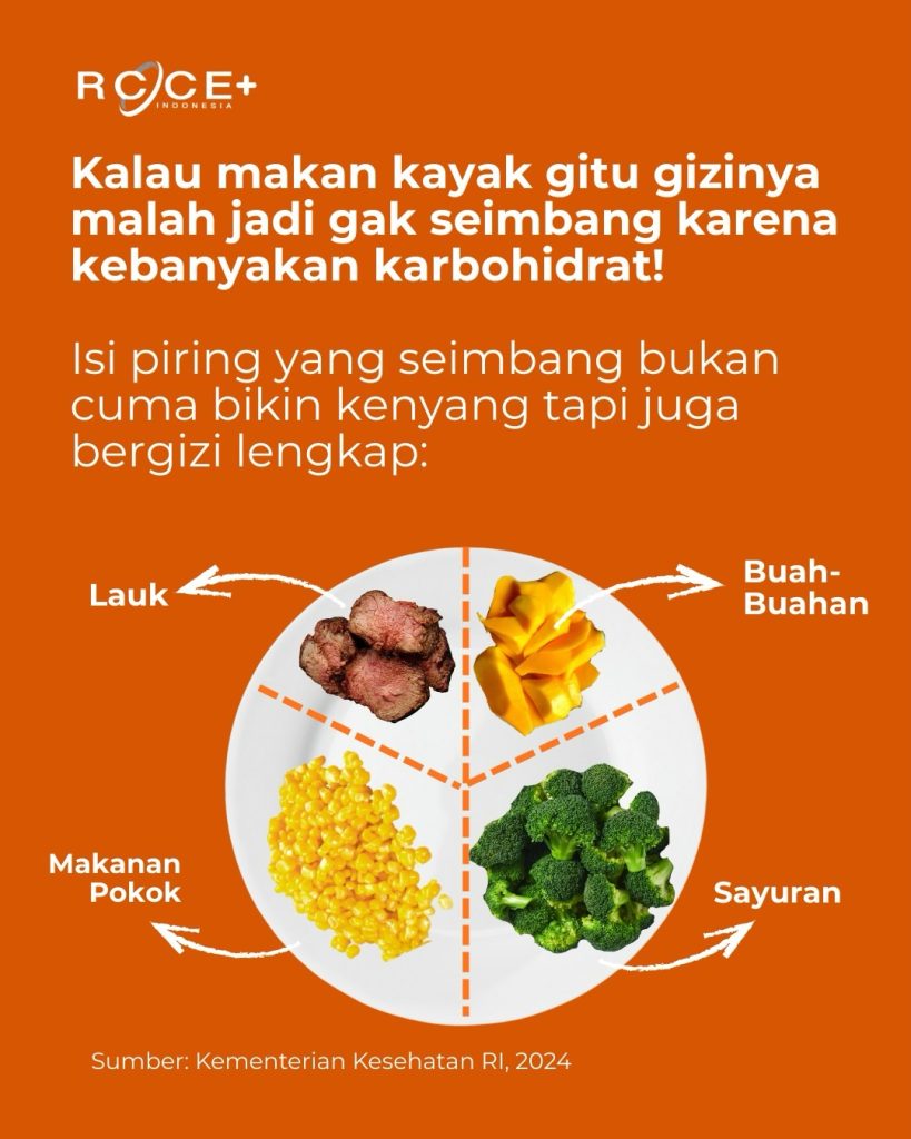 Daripada makan karbo dobel, lebih baik gizi dalam satu piring itu seimbang, Cek halaman terakhir buat lihat pembagian makanan yang disarankan ya.